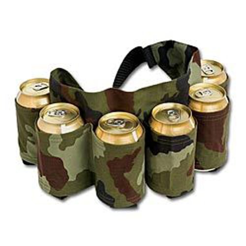 Look Ma, no hands! Having The Beer Belt ensures that you'll never be out of reach of your next cool one!! Holds six 12 ounce. cans or bottles of beer around your waist. Constructed from durable ballistic nylon, in green army camo. Features quick-snap buckle, and adjustable size belt strap. The Beer Belt is perfect to bring to parties, outdoor events, fishing and camping trips, tailgate parties, etc. Need a drink?